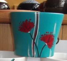 2) Горшок керам. с п/д 4608/13 голубой цена 166 руб Длина 16,5 Ширина 16,5 Высота 13,8 литраж 1,8