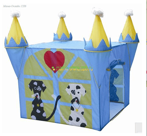дизайн - сказочный замок с высокими башенками, на стенах которого изображены милые собачки