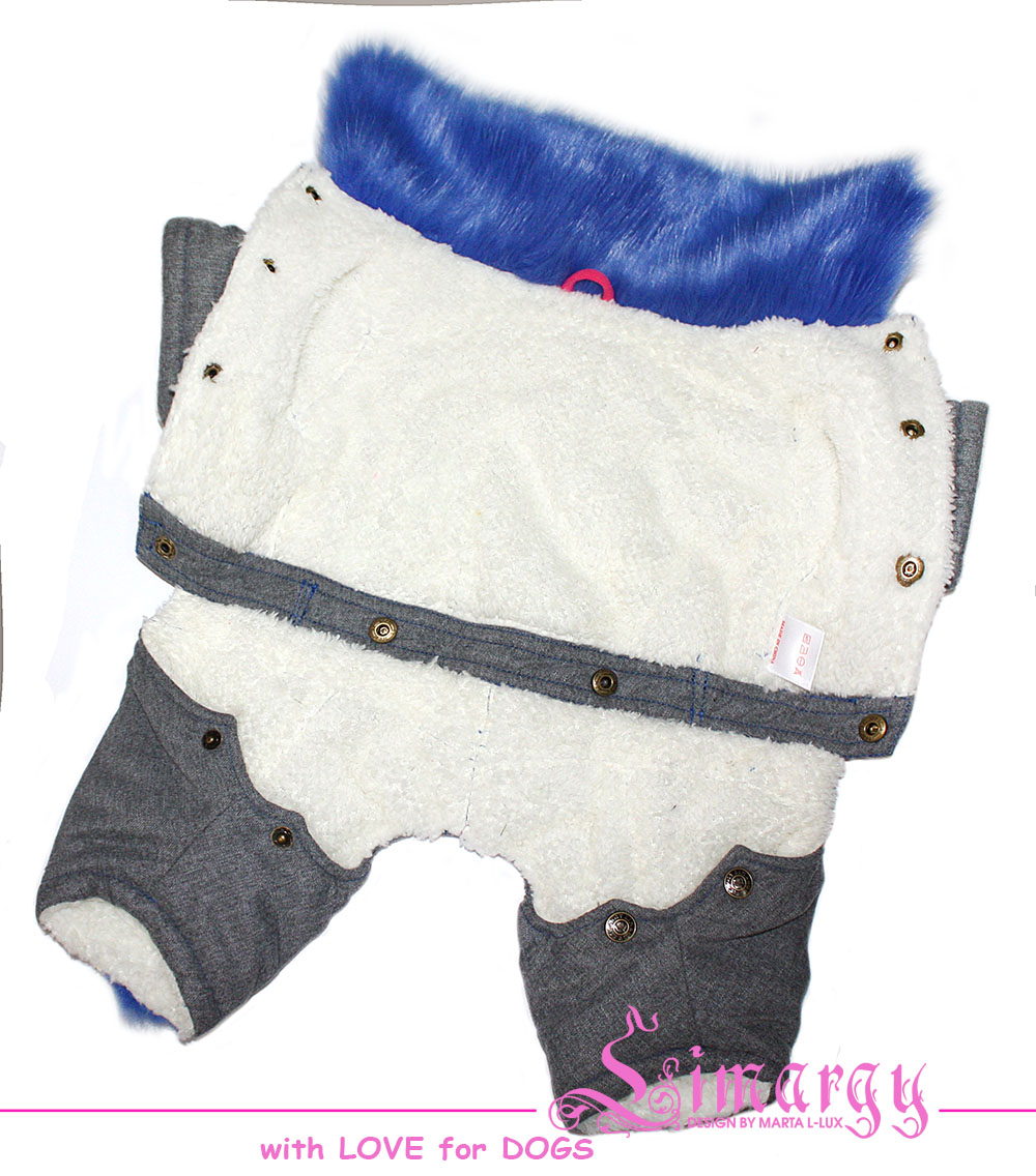 Стиль "Хипстер". Стильный зимний комбинезон из костюмной ткани, в сочетании с кожаной отделкой и металлическими клепками, на синтепоне. На спинке модная аппликация из страз, воротник украшен мехом с длинным ворсом в цвет отделки, 2 штанины также украшены меховой отделкой. Застежка - клепки.