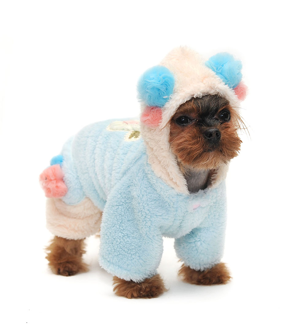 Очень нежный и теплый плюшевый комбезик на осень, на спинке аппликация в виде мордочки медведя, комбинезон украшен бантиками.