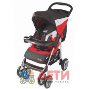 На задних колесах тормоз. Все колеса изделия, выполненные из высокопрочного пластика, амортизированы. Угол наклона спинка меняется в 3-х положениях. Удобная подставка для ног легко регулируется под рост ребенка.