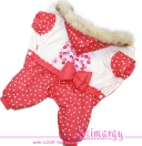 Практичный и теплый комбинезон на холодную зиму. Спинка украшена аппликацией. Капюшон украшен мехом, капюшон фиксируется на спине клепкой, на талии - большой объемный бант, также регулировка по длине. Застежка - клепки, Внутри - мягкий плюш.