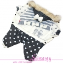 Практичный и теплый комбинезон на холодную зиму. Спинка украшена аппликациями, объемными бантиками. Капюшон украшен мехом, мех отстегивается, возможна замена на натуральный, капюшон фиксируется на спине клепкой, на талии - также регулировка по длине. Застежка - клепки, Внутри - мягкий плюш.
