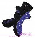 Модный и теплый комбинезон на холодную зиму. ЗАСТЕЖКА - СВЕРХУ. комбинезон разделен на 2 части цветами и кантом, украшен аппликациями из снежинок. Высокий воротник - стойка с завязками, на талии - регулировка по ширине с помощью 2х клепок. Застежка - клепки разного цвета, Внутри - мягкий плюш. Идеально для худеньких собак!!!