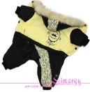 Модный и теплый комбинезон на холодную зиму. Спинка украшена аппликацией. Капюшон, одна из штанин украшены кружевом с объемными стразами, капюшон фиксируется на спине клепкой, на талии - также регулировка по длине. Застежка - клепки, Внутри - мягкий плюш.