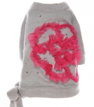 Кофточка выполнена из нежного вязаного полотна, в которой Вашей малышке будет тепло и уютно. Кофточка украшена аппликацией в виде цветка из сетки и усыпана стразами. Слева, по низу проходит планка, которая переходит в бант, что позволяет отрегулировать объем на талии. В комплекте можно подобрать кружевную юбочку серого или молочного цвета.