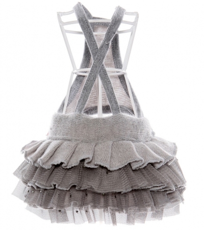 Юбочка выполнена из нежного вязаного полотна в виде комбинезончика на лямках, что очень удобно, т.к. юбочка не сможет сползти. Очень пышная и нарядная, выполнена в виде сборок с чередованием вязаного полотна и сетки, на сетке поблескивают стразы. В комплекте можно подобрать красивую кофточку.