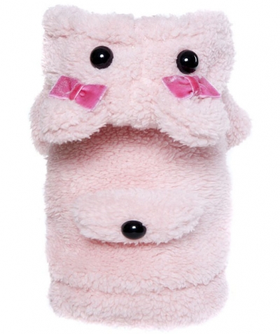 Выполнена из мягкого плотного плюша с длинным ворсом, на флисовой подкладке, кофточка выполнена в виде милой мордочки, на капюшоне ушки, украшенные бантиками и глазки, на спинке - носик. Кофточка застегивается на клепки, очень мягкая и нежная на ощуп.