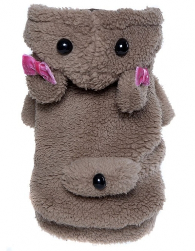 Выполнена из мягкого плотного плюша с длинным ворсом, на флисовой подкладке, кофточка выполнена в виде милой мордочки, на капюшоне ушки, украшенные бантиками и глазки, на спинке - носик. Кофточка застегивается на клепки, очень мягкая и нежная на ощуп.