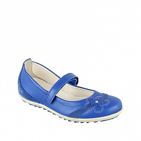 Привлекательные туфли торговой марки IMAC выполнены в синем цвете. Изготовлены из натуральной замши. На мысах туфли украшены декоративной вырезкой и вышивкой в виде цветка. Сверху ремешок-липучка для надёжной фиксации туфель на ножке ребёнка. В пяточную часть встроена анти-шоковая подушечка из специального материала, которая обеспечивает максимальное поглощение ударов и способствует равномерному распределению нагрузки. Внутри анатомическая стелька из натуральной кожи, обладающая антибактериальными свойствами, гарантирует свежесть и комфорт. Подошва, изготовленная из вспененного полиуретана, сочетает лёгкость, прочность, пластичность и не позволяет скользить.