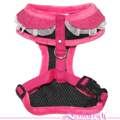 Внутренняя часть разработана из специального дышащего материала с сеткой, все фиксаторы и зажимы подобраны специально по размеру изделия. Основной материал шлейки выполнен из ткани, содержащей максимальное количество х/б волокон.